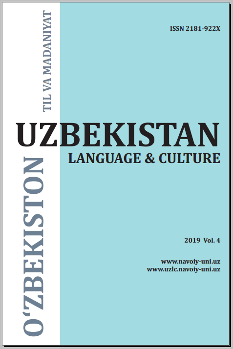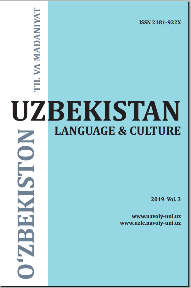 Vol. 2 No. 2 (2019)“Uzbekistan: Language and Culture” is an academic journal that publishes works in the field of linguistics, history, literature, translation studies, arts, ethnography, philosophy, anthropology and social studies. The journal is published four times a year. The purpose of the journal is to publish the results of the latest research that are rich in new, innovative ideas and has its own concept, which stimulates debate on topical issues in these areas. The language of articles can be English, Russian and Uzbek. Other Turkic languages are also welcome. We do not publish economic analyses or political articles. In addition to research articles, the journal announces book and literary work reviews, conference reports and research project results. The authors’ ideas may differ from those of the editors’.